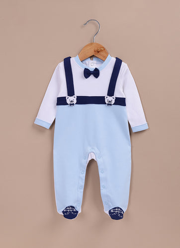Le Pur BioCool Baby Boy Romper with Suspender & Bow Tie Design – Blue & White